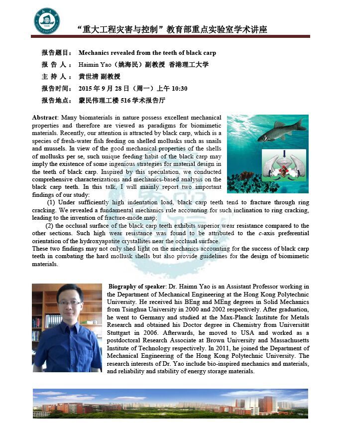 “重大工程灾害与控制”教育部重点实验室学术讲座